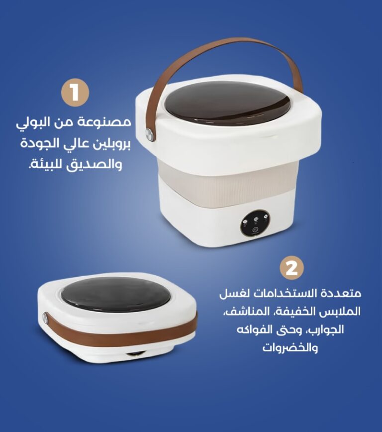 مصنوعة من خامات آمنة وسيليكون غذائي يحافظ على سلامتك، والاستخدام سهل جدًا: ضع الماء والمنظف والملابس ودع الغسالة تعمل. تصميم قابل للطي بارتفاع 10 سم فقط يجعلها مثالية للسفر، الشقق الصغيرة، المصيف أو حتى السيارة.