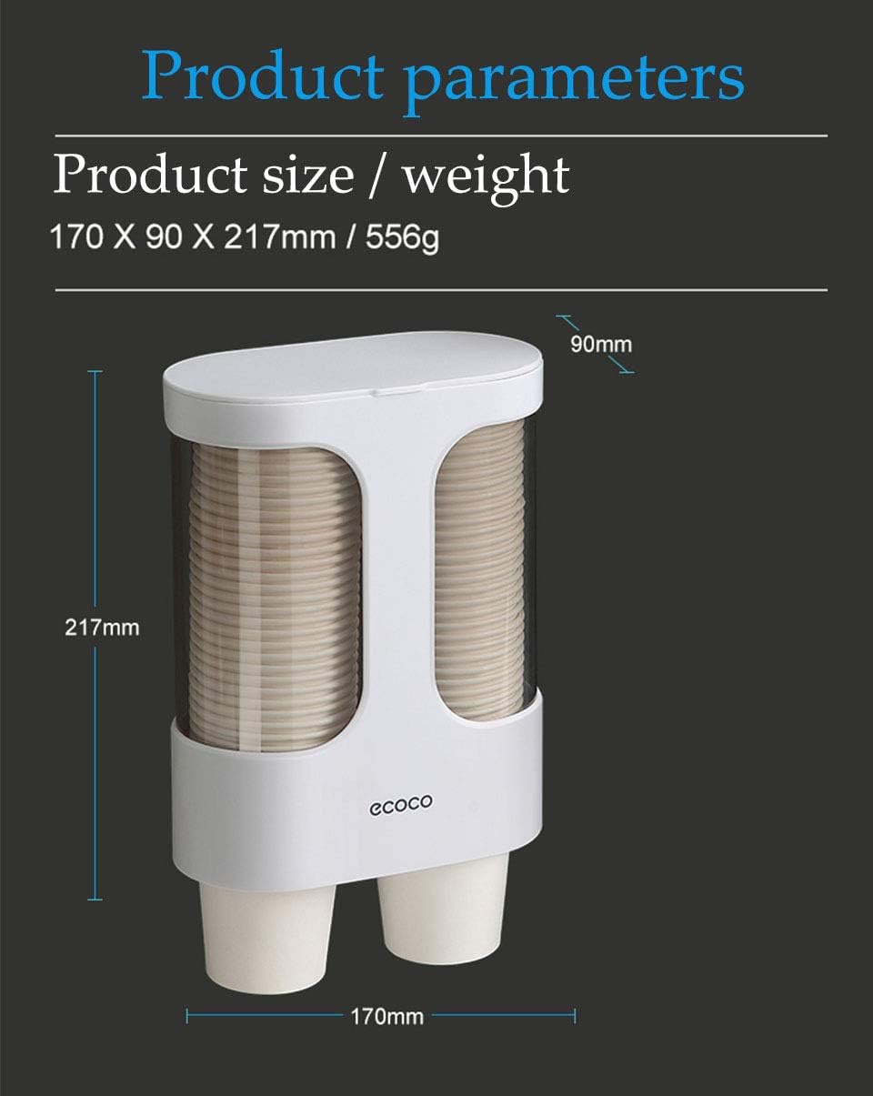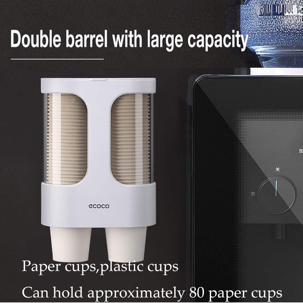 موزع أكواب Ecoco المثبت على الحائط, تصميم أنبوب مزدوج يمكنه استيعاب 80 كوبًا ورقيًا