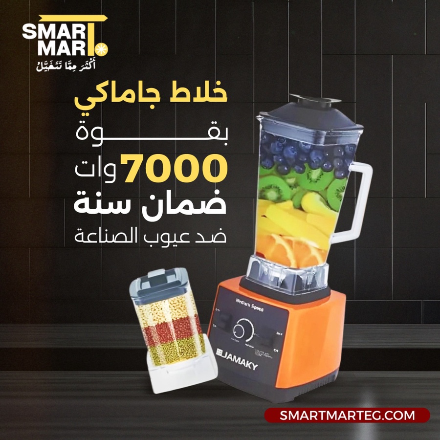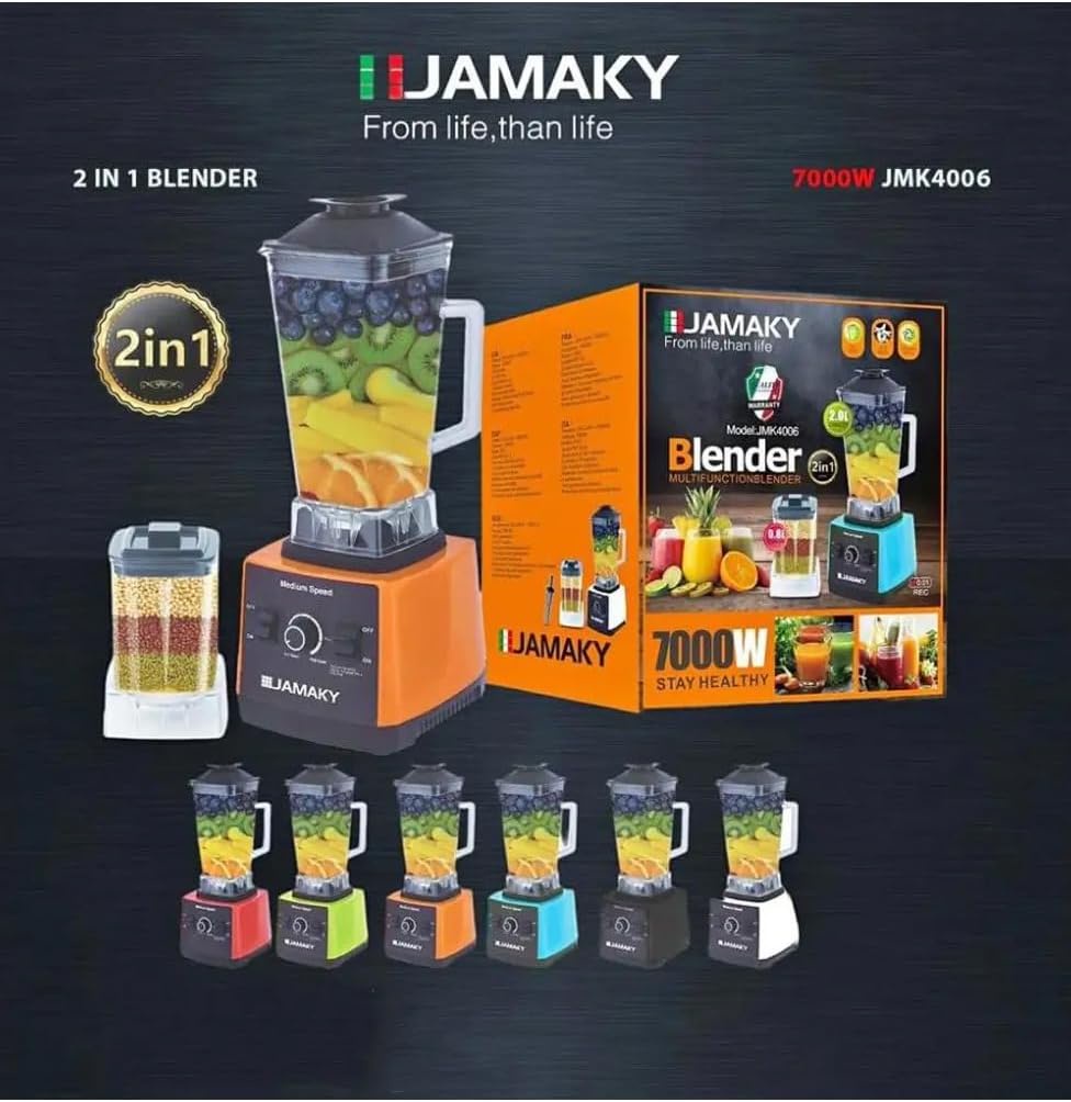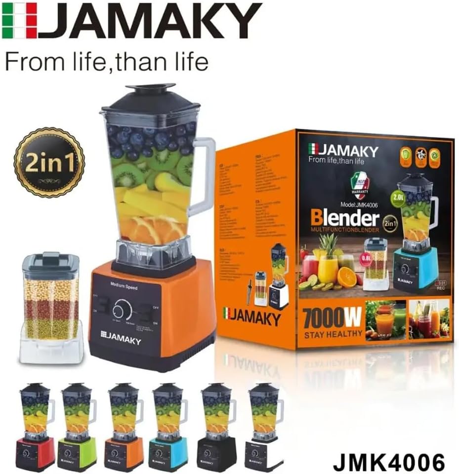 خلاط ومطحنة احترافي من جاماكي بقدرة 7000 وات مع وعاء أكريليك سعة 2 لتر و7 سرعات